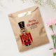 Christmas party favour bags with cute nutcracker illustration. Funny toy soldier drawing with custom Holiday greeting. White or Kraft paper options.