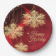 Christmas Party Gift Red Golden Snowflakes Holiday Paper Plates. Unique, beautiful, stylish design. Easy to be personalised. Font style, size and colours can be changed. Matching items are available.