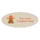 This awesome name tag features a cute cartoon of a colourful gingerbread woman. She has black eyes with white pupils and pretty black eyelashes and a big smile on her face. She also has red and green tassels on her skirt and top ready for a Christmas party. There is customisable text so you can add your name and company name.