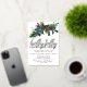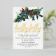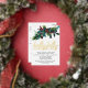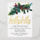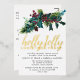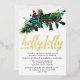 Festive holly and pine sprig with red berries tops this Christmas party invitation. Holly Jolly Christmas Party is written below in pressed gold foil.
