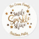 Christmas Party Gold White Classic Round Sticker. Smile, Sparkle and Shine A Christmas Party Sticker for your holiday party invitations. Designed with light and dark gold coloured text and accents on a white background, and your name. To personalise simply insert your text into our easy template, replacing the sample. Be sure to view the matching Smile, Sparkle & Shine Christmas party accessories.