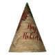 Christmas Party Golden Green Leaves Red Rustic Party Hat. Unique, beautiful, stylish design. Easy to be personalised. Font style, size and colours can be changed. Matching items are available.