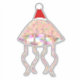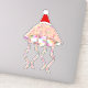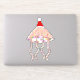 This awesome sticker features a sparkly jellyfish lit up like Christmas lights. The top of the bell is glittery and the underside looks like flashing lights, even the tentacles are bright and colourful. The Jellyfish is wearing a red and white Santa hat and is ready for a jelly Christmas.