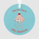 This awesome acrylic ornament features a sparkly jellyfish lit up like Christmas lights. The top of the bell is glittery and the underside looks like flashing lights, even the tentacles are bright and colourful. The Jellyfish is wearing a red and white Santa hat and is ready for a jelly Christmas.