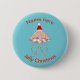 This button features a sparkly jellyfish lit up like Christmas lights. The top of the bell is glittery and the underside looks like flashing lights, even the tentacles are bright and colourful. The Jellyfish is wearing a red and white Santa hat and is ready for a jelly Christmas.