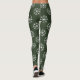 Funny Ugly Christmas leggings with snowflake pattern. Fun Holiday pattern design pants. Cute clothing for women and girls. Personalizable tights with custom background colour iedark green. Make your own custom printed pants for the Holiday season. Humourous costume outfit idea for Santa's little helper or elf. Match with your favourite ugly x-mas sweater.
