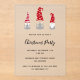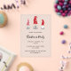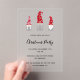 Frosted background, decorated with 3 Scandinavian style gnomes in red, white and grey. A party invitation perfect for a Christmas party with friends, family or coworkers. Personalise and add your party details. Black letters.