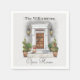 This Christmas Open House party napkin features a cute watercolor Cocker Spaniel seated in front of an elegant door, surrounded by festive foliage and a cute little Red Cardinal bird. It would be the perfect accessory for your Holiday party for friends, neighbours and family.