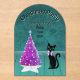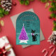 Christmas Party Pink Tree Black Cat Teal Room Acrylic Invitations