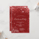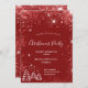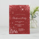 Classic red background, with faux glitter dust and white winter Christmas trees as decor. With the text: Christmas Party written with modern and trendy large hand lettered style script. Personalise and add your party information.