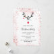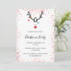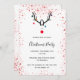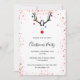 A cute, funny, modern, minimalist and abstract reindeer head. A white background and red faux glitter dust. A party invitation perfect for a Christmas party with friends, family or co-workers. Personalise and add your party details. Black letters.