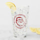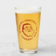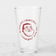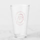 Custom holiday pint glass featuring jolly Santa Claus with Christmas party details wrapped around in bold serif type. Make it a Christmas gift for your home, family, and guests this year. 16 ounces.