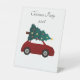 CHRISTMAS PARTY SIGN WITH CAR DESIGN IN RED AND CHRISTMAS TREE