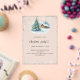 A winter invitations for a Christmas party. A frosted background, decorated with a watercolored decorated Chrustmas tree in the snow, a small wooden house and faux sparkling glitter. Personalise and add your party details.