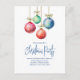 This design features a Christmas party invitation, with a festive, watercolor, cute, ornaments, a simple minimalist style with script typography, hand written style, an elegant, minimal design