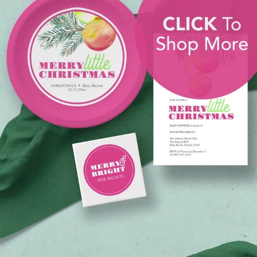 Celebrate your Sip and See Baby Shower with our unique editable Christmas party invitation template. Featuring a top border of original watercolor holiday baubles in vibrant shades of pink, orange, and green, this design captures the festive spirit. The "Merry Little Christmas" typography in magenta and green adds a charming touch. Personalise it with your brunch or Pinkmas Sip and See details. Choose to download a digital file for easy emailing or order printed cards on luxurious card stocks, with the pearl shimmer being a favourite for this design.