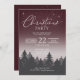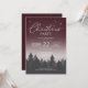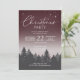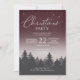 Simple Christmas Party invitation with red starry night and grey silhouetted trees on the bottom. Elegant script font saying "Christmas Party." This can be customised for any house or work party!