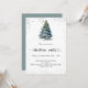 A winter invitations for a Christmas party. A white background on the front decorated with a watercolored hand-drawn pine tree with snow and faux sparkling glitter. Personalise and add your party details.