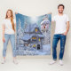 Christmas Party Winter White Snowman Blue Rustic Fleece Blanket