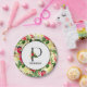 Christmas Pattern Monogram Initial P Personalised Paper Plate