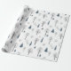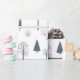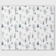 Christmas Pattern Of Blue, Black Trees On White Wrapping Paper