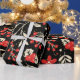 Elegant red and white Christmas foliage design that seamlessly repeats on a sleek black background. Perfect for creating a festive and sophisticated holiday wrapping paper.