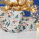 A cosy Christmas scene is depicted on a white fabric, featuring a charming snowman surrounded by festive Christmas trees. The pattern appears to be quilted, adding a tactile element to the design. The colour palette includes warm earth tones such as browns and beiges, with accents of dark blue and a pop of red. The pattern exudes a sense of winter cheer and holiday spirit, perfect for adding a touch of seasonal decor to any home. The intricate details of the snowman and trees create a whimsical and inviting atmosphere, reminiscent of a winter wonderland.