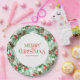 Christmas evergreens and red berries pattern with Merry Christmas typography and customisable family name.