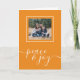 Christmas Peace and Joy Typography Holiday Photo card from Ricaso - designed with a wonderful flowing typography Peace & Joy text to the front - this fun colourful orange design is sure to be a hit with family and friends .. easy to add your own text and photo - Send your greetings in style this holiday with a personalised greetings card with a delicate typography - also available in other colours in store and in a range of coordinating products from the Peace & Joy range