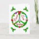 Enjoy the Christmas season with this colourful peace sign with holly, bows, a present, ornaments, a stocking and the words - Peace Love Christmas.