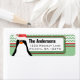 Funny Cute Christmas Penguin Chevron Zig Zag Pattern Return Address Label in Red and Green - See more Christmas Designs by Sandra