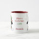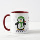 Here's a cute Holiday mug that features a sledding penguin and your own personalised text. The penguin is dressed in a Holiday green scarf and hat. He is coasting on his sled, and a few snowflakes drift down around him. The image is repeated on twice, with three text fields for your custom text in between. Perfect for big and little kids during the Christmas season!