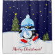 This shower curtain has a vector illustration design showing a cute baby penguin trying to skate. Around are christmas trees and a snowy sky. The text on this product is a template object and can be changed easily into any text you like. It is also possible to change the font type, font colour and / or font size. If you don't like any text just delete it.