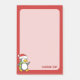 A little penguin cartoon with santa hat and green scarf walking on snow. Custom background colour. Custom text.