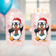 Christmas Penguin with Hat and Candy Cane Can Glass
