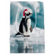 Cute penguin wearing a Santa Claus cap on an iceberg.
