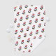 Repeating pattern of a photograph of a stuffed toy penguin dressed in a Christmas Santa hat and with a green scarf