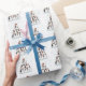 Christmas Penguins Pattern with Snow Flakes Wrapping Paper