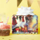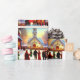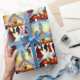 Merry Christmas! A nostalgic snow globe pattern design featuring crowds of villagers going to church on Christmas morning in a snowy quaint village.