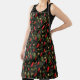 Festive red and green chilli peppers with evergreen sprigs and glowing Christmas lights make up the pattern in this artwork. Show some spicy flare in the kitchen during the holidays, and Feliz Navidad!
