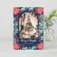 Christmas Photo Botanical Red Floral Blue Holiday Card