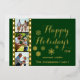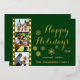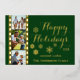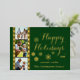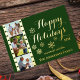 Old camera film strip Christmas Photo Card featuring real foil, Cedar green background with elegant golden "Happy Holidays" typography and three family photos, easily customised with your own.