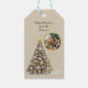 Personalized gift tags featuring a gold and silver Christmas tree. Add your photo and a short message for a polished holiday look.