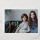 Muted navy blue colour stripes - A modern look for a holiday photo card. A gold foil word - joy - is on top of the photo and holiday greeting.