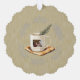 A special family photo will appear on a cosy Christmas mug on this rustic ornament card. A circle of silvery pine branches surrounds the holiday mug graphic. The faux woodgrain background creates a warm and homey feel. On the back, there's a customisable message in casual typography for a special personal touch.