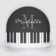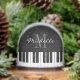 Christmas photo snow globe for piano player. Cute personalised gift idea for the Holidays. Make one for piano teacher, pianist, musicians, friends, family etc. Upload your own picture or image on the back. Elegant gift with black and white piano keys.