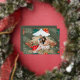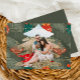 This rustic holiday card includes a Christmas tree shaped photo with a beautiful Christmas tree and ornament holiday pattern. The back is a coordinating festive solid green colour.