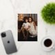 Add a vertical photo and family name to this Christmas photo card. You can even change the Christmas greeting to another saying.