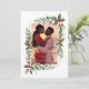Decorative Christmas Photo Frame with Green Leaves & Red Berries Christmas Card as a Wedding Save the Date Card.