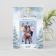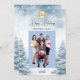 Watercolored winter forest as background. Personalise and add your business logo, name and a photo. Happy Holidays written with a trendy handlettered style script.